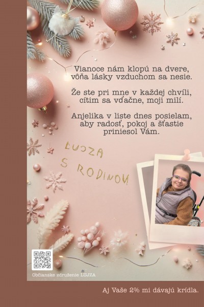 v roku 2024 zdravotné problémy viedli k administratívnej chybe, ktorá viedla k tomu, že v roku 2025 budeme musieť 2 % pre Lujzičku zbierať cez iné občianske zruženie, preto Vás prosíme o pochopenie a veríme, že Vás to neodradí a zostanete s Vašou podporou Lujze verní. Z tohto dôvodu, aby sme si ich mohli nárokovať, budeme potrebovať od darcov 2 % opečiatkované kópie tlačív Vyhlásenie..., ktoré budete odovzdávať na Daňový úrad (kvôli čiastke, ktorá bola venované "pre Lujzu")
